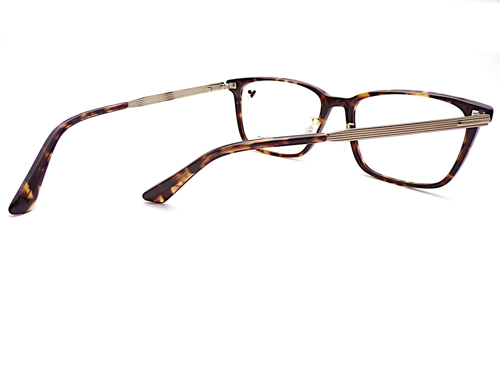 Calvin Klein CK21534 glasses frame 220 combines classic elegance with contemporary design for a refined look. This unisex frame features a dark shiny brown Havana front paired with gold metal arms, creating a striking and sophisticated contrast. Crafted from durable acetate with metal temples, it offers lightweight comfort and everyday reliability, while the 55 mm eye size size suits most medium to larger sized faces. The Calvin Klein CK21534 is a stylish and versatile choice for those seeking modern yet timeless eyewear.
