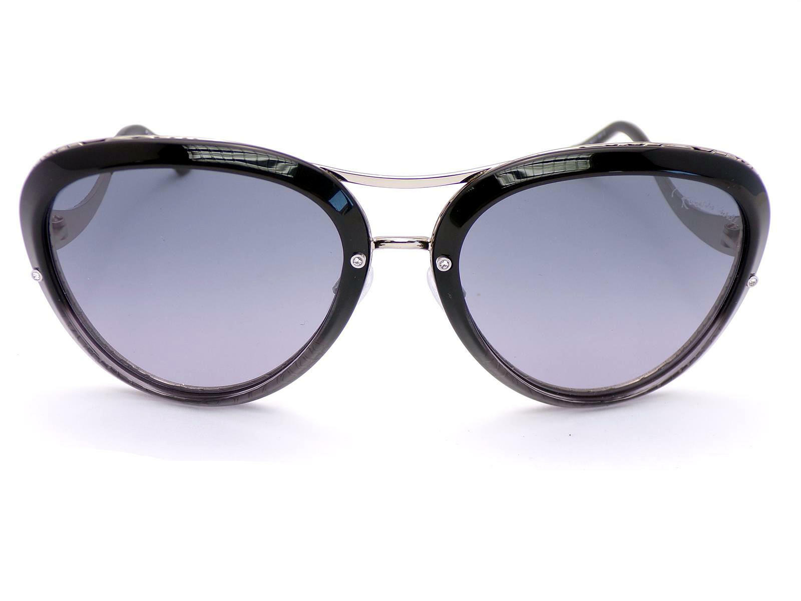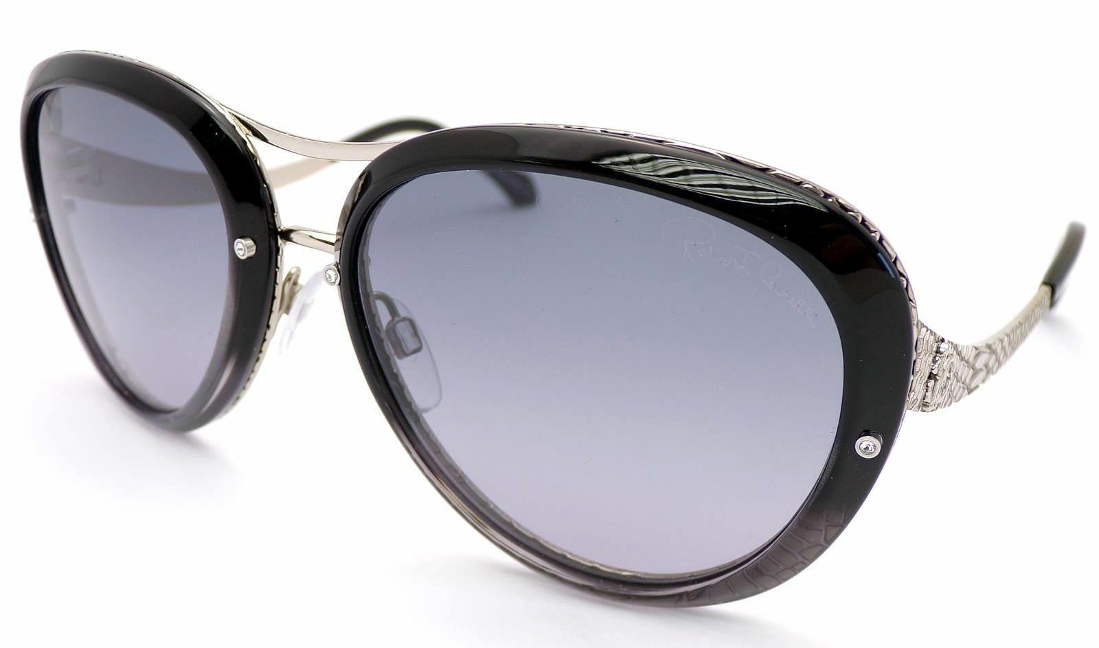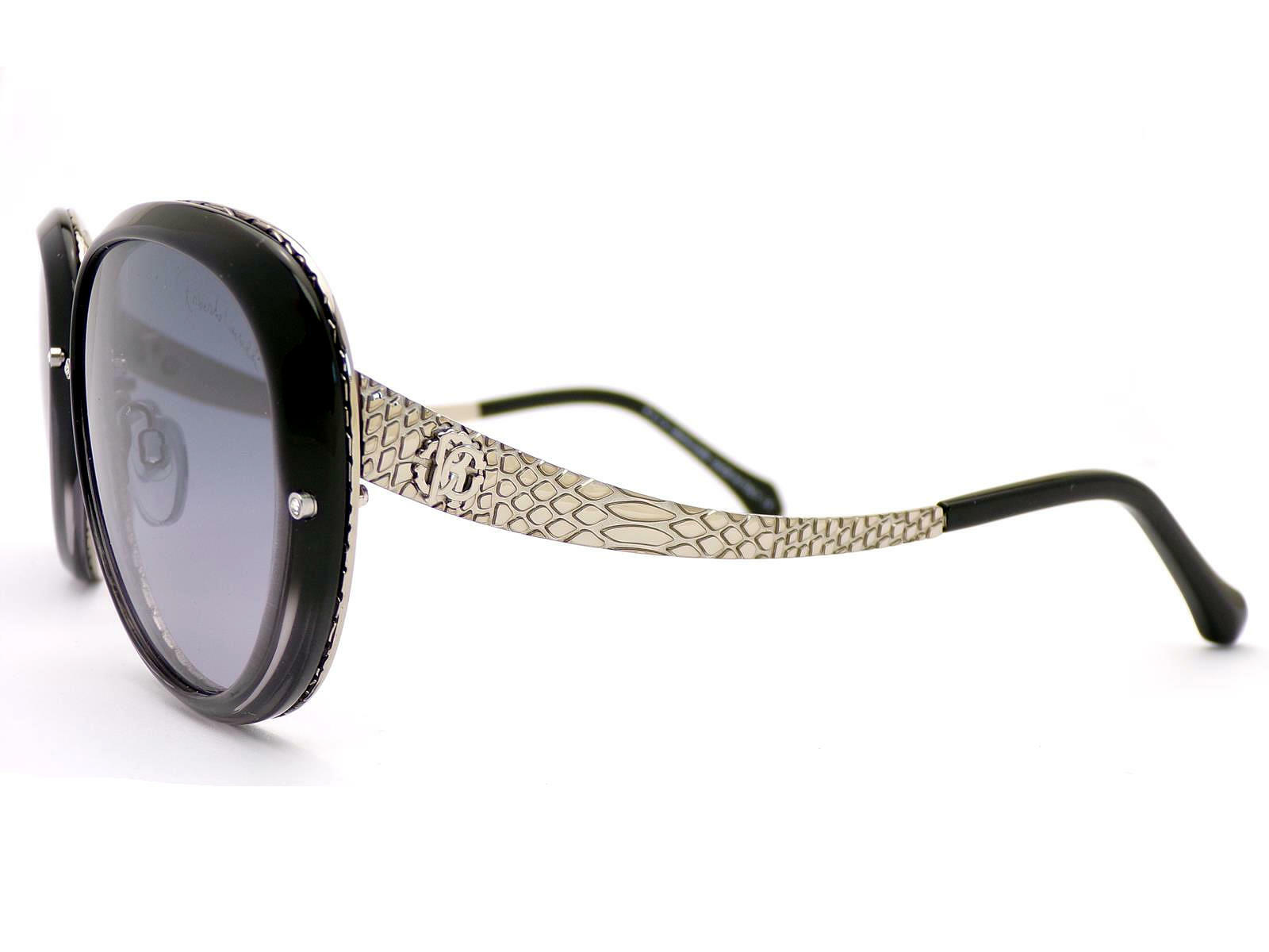 Roberto Cavalli Nashira sunglasses RC923S 05B deliver signature glamour with a bold designer edge. The shiny black acetate frame is beautifully contrasted by striking shiny ruthenium snake-inspired metal arms.