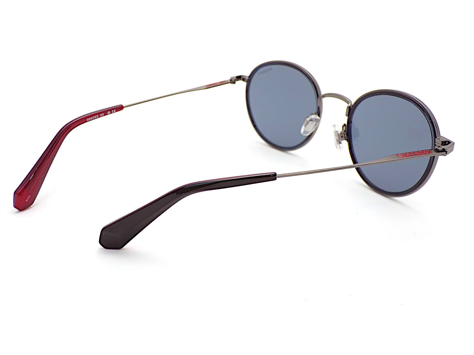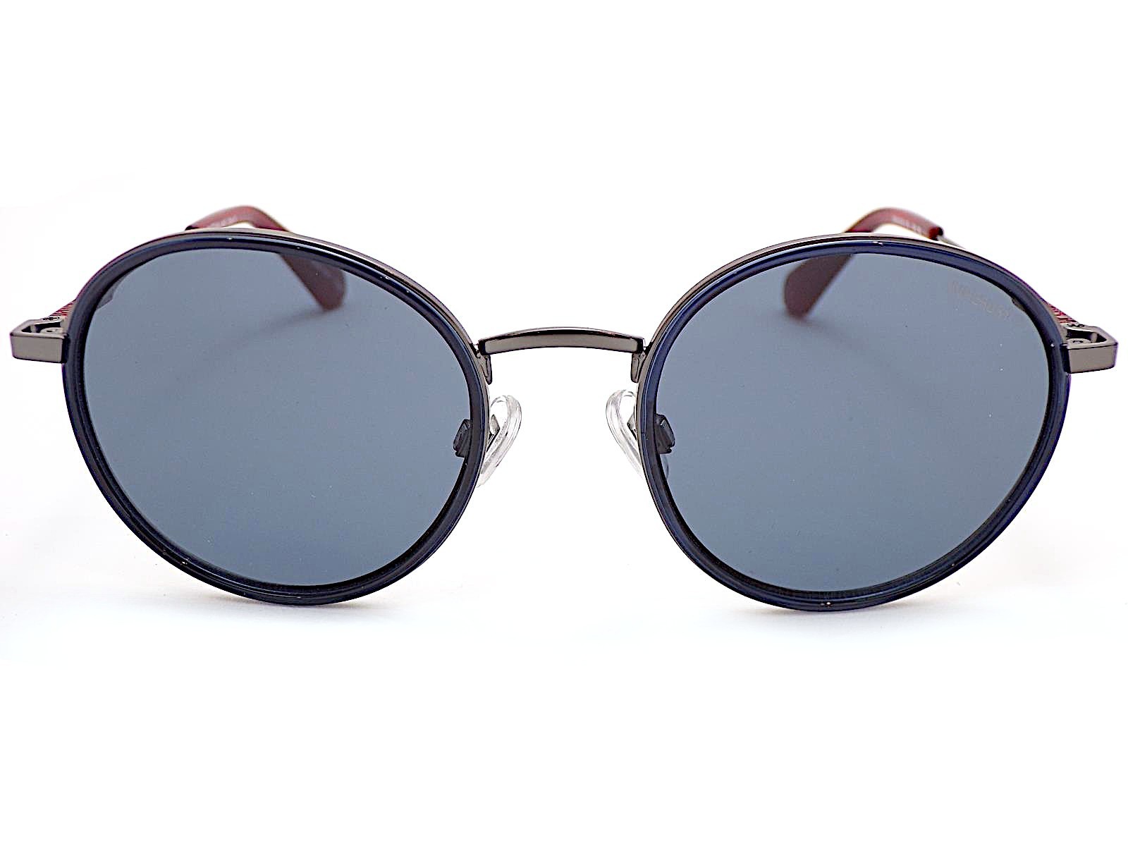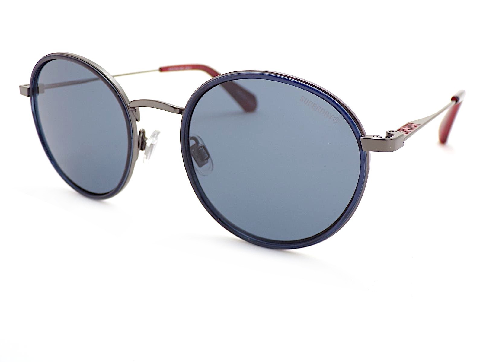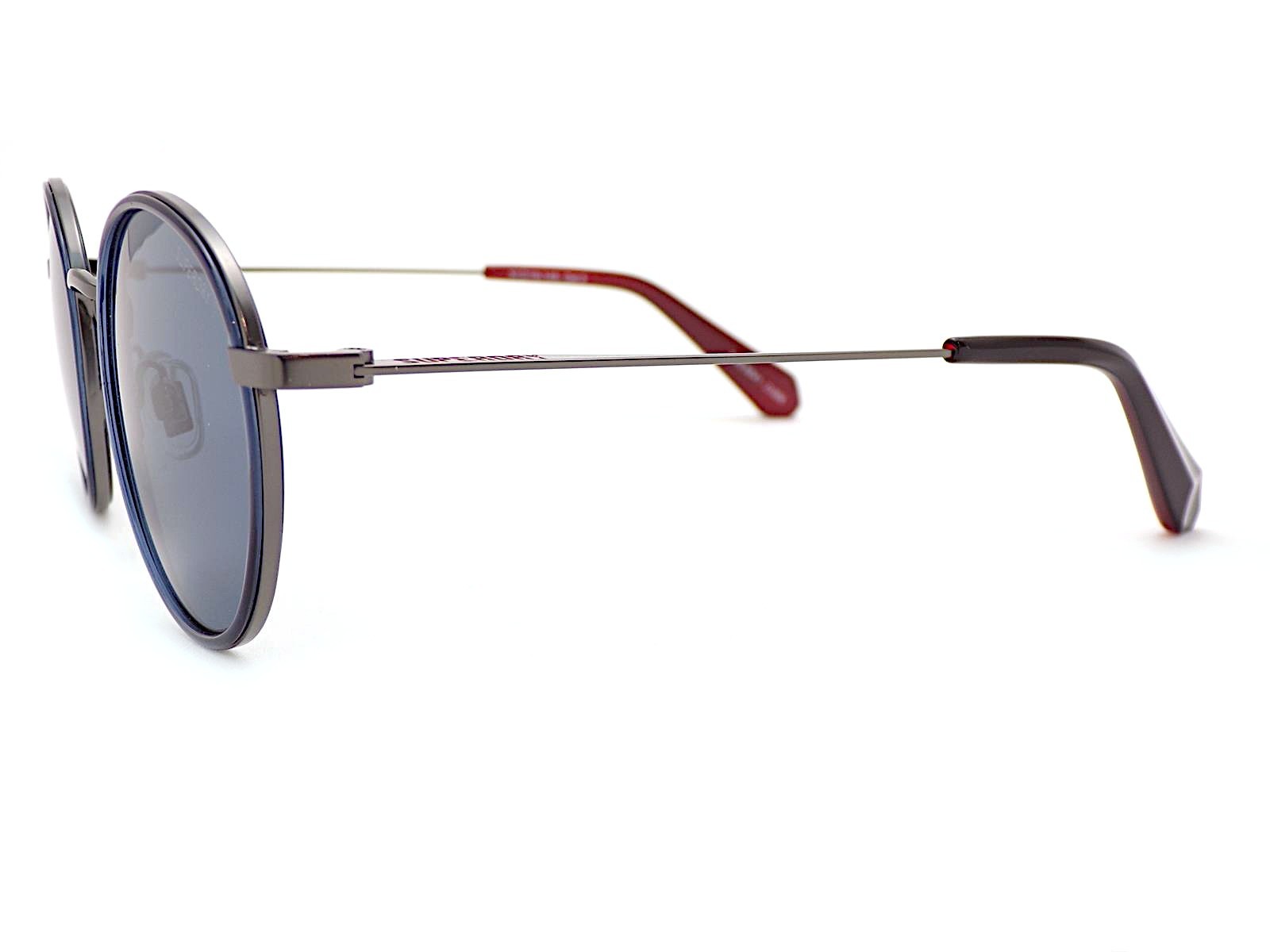 Superdry SDS 5041 Round Sunglasses 006 Gunmetal Blue Black Red with Grey Lenses